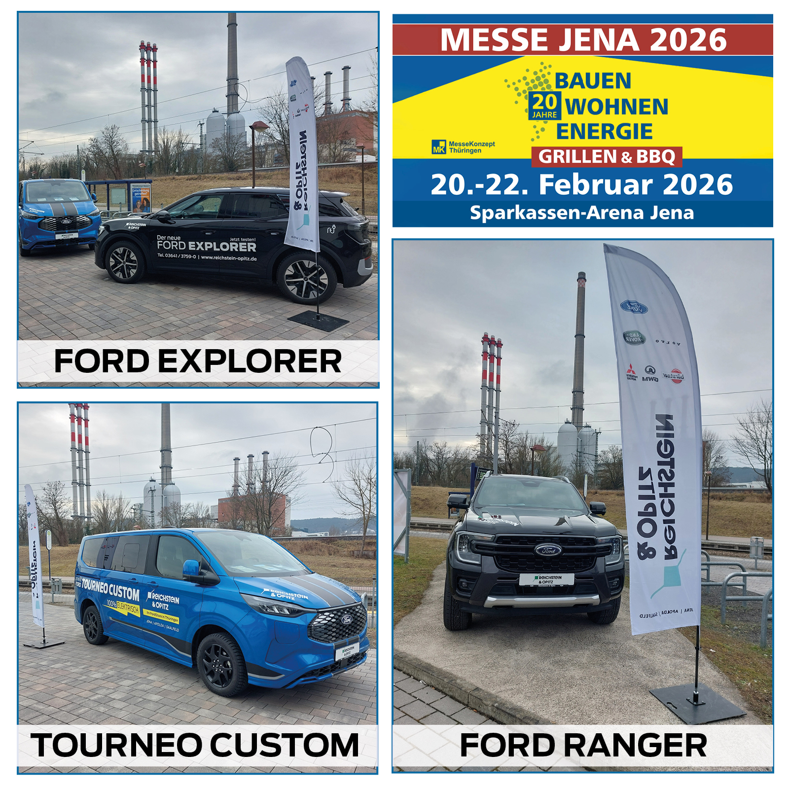 Jährlich ist das Autohaus Reichstein & Opitz auf der Automobilmesse Erfurt am Ford-Gemeinschaftsstand vertreten und präsentiert eine breite Auswahl aktueller Ford Modelle – von Elektromobilität über Performance bis hin zu Nutz- und Freizeitfahrzeugen.